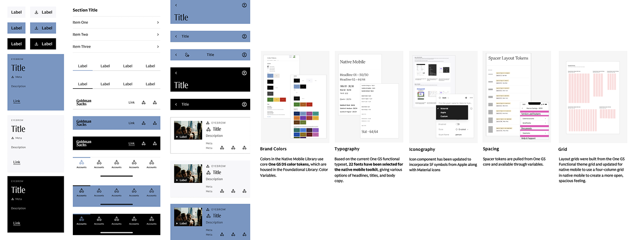 To establish consistency across Goldman Sachs’ digital ecosystem, our team was tasked to create a Native Mobile Toolkit—a centralized library that streamlines native mobile design and development through shared foundations and scalable components.